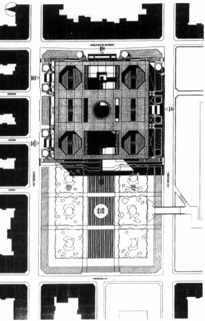 Se concibe un ¨ interior urbano ¨ en el sentido dado por Norberg Schulz. La propuesta se convierte en un pretexto para generar un espacio urbano.