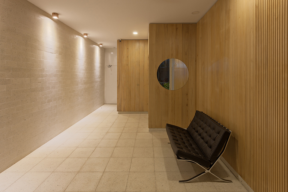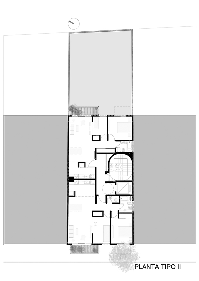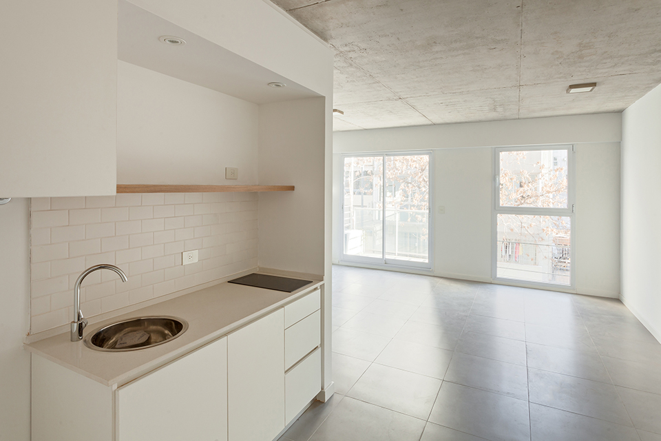 Se trata de un edificio de viviendas colectivas en el barrio de Belgrano, implantado en una cuadra típica con construcciones de 10 pisos de altura. Las unidades son monoambientes y de tres ambientes, y comparten un salón de reuniones y una terraza en el piso superior.