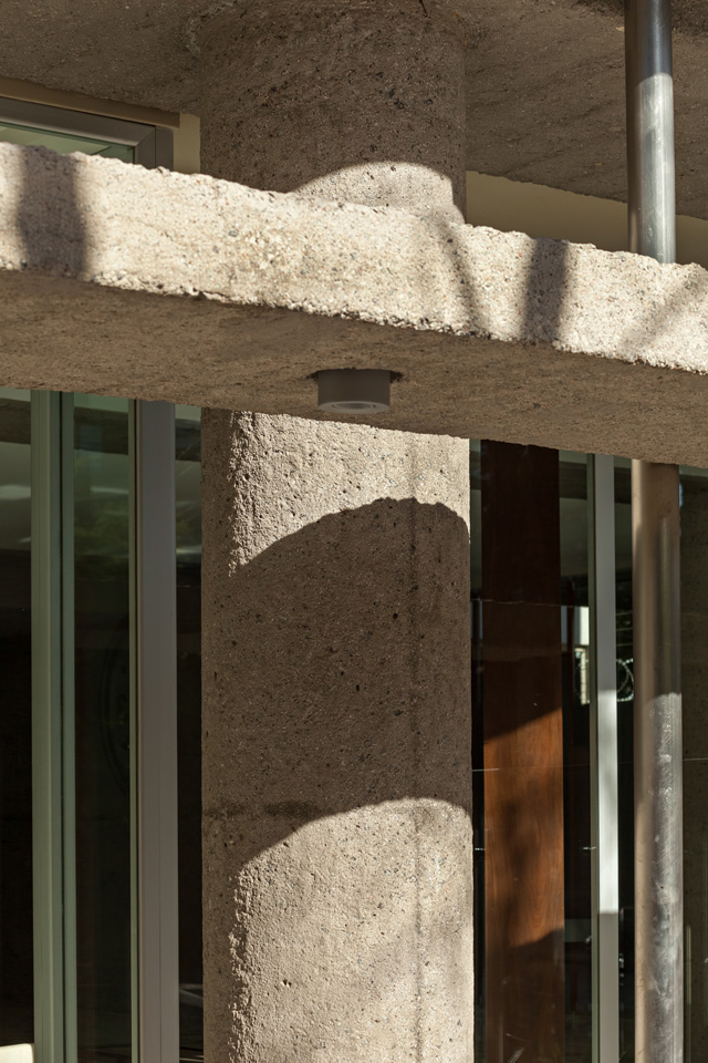 El edificio se concibe como la articulación armónica entre lo mineral representado por el hormigón visto martelinado en la totalidad de las superficies a manera de roca artificial conjuntamente con las superficies acristaladas y lo orgánico representado por las envolventes de madera y el componente vegetal. De esta forma se aporta un impacto positivo en el paisaje urbano del barrio con la generación de un clima más natural.