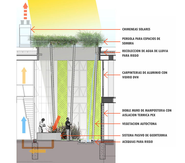 Se propone un edificio como un organismo sustentable, eficiente energéticamente desde la concepción del proyecto y no a partir de tecnologías caras.