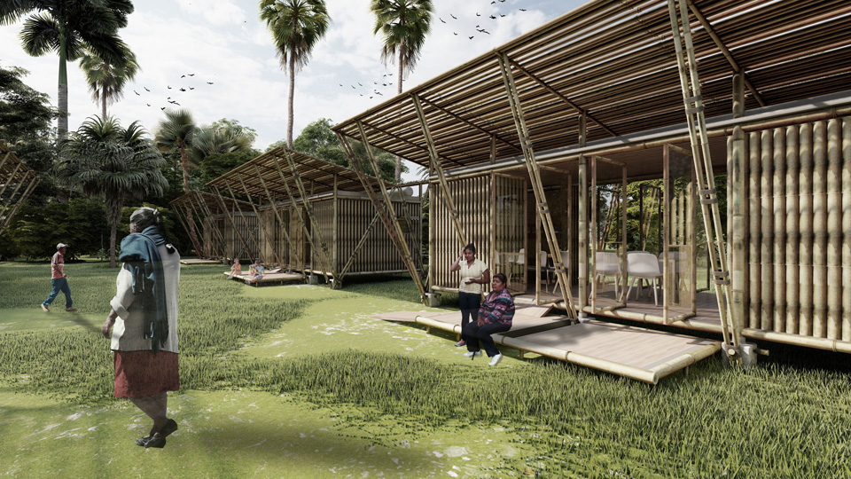 CULATA JOBAI. Se retoma la arquitectura vernácula local, con un espacio central abierto en ambas caras, como el alma de la vivienda, aprovechando las brisas. Responde así al clima de la región.