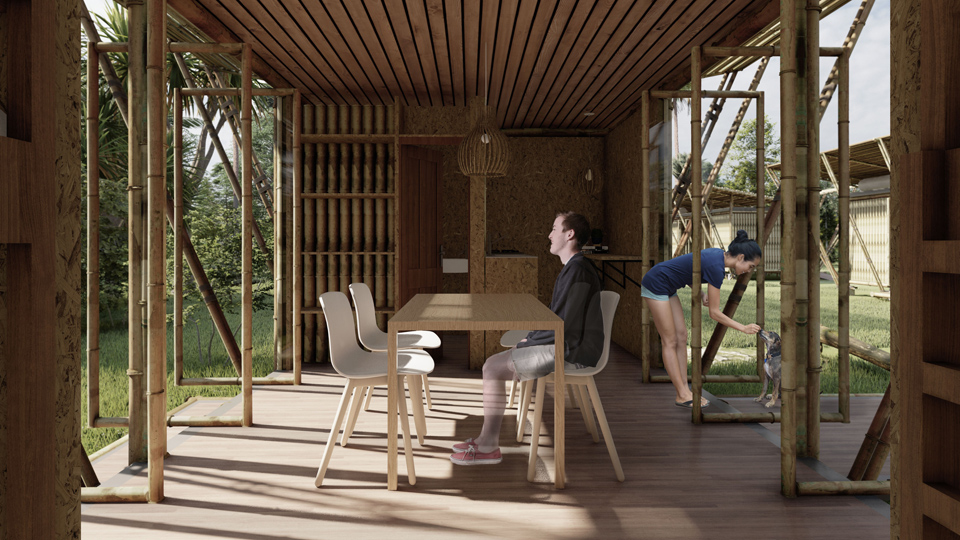 Se concibe un hábitat para la emergencia que pudiera convertirse en una vivienda definitiva por su calidad constructiva, su eficiencia energética y la utilización de recursos locales de bajo costo. Se propone talleres de autoconstrucción para transmitir conocimientos y así resolver el problema habitacional de miles de familias.