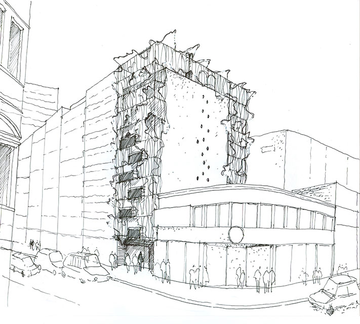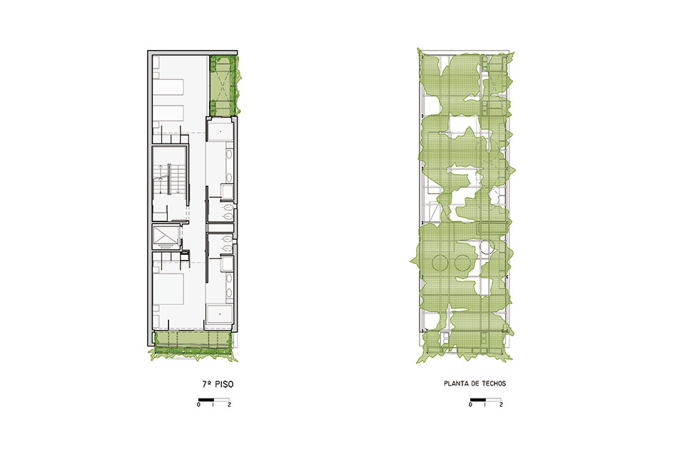 Se intenta así, a través de la arquitectura, recuperar en el transitar a nivel urbano, aquel viejo valor de “mirar hacia arriba” y desde el interior de cada una de las habitaciones, se puede observar y capturar la sólida urbanidad a través de un filtro natural.
