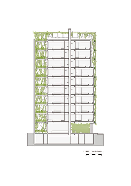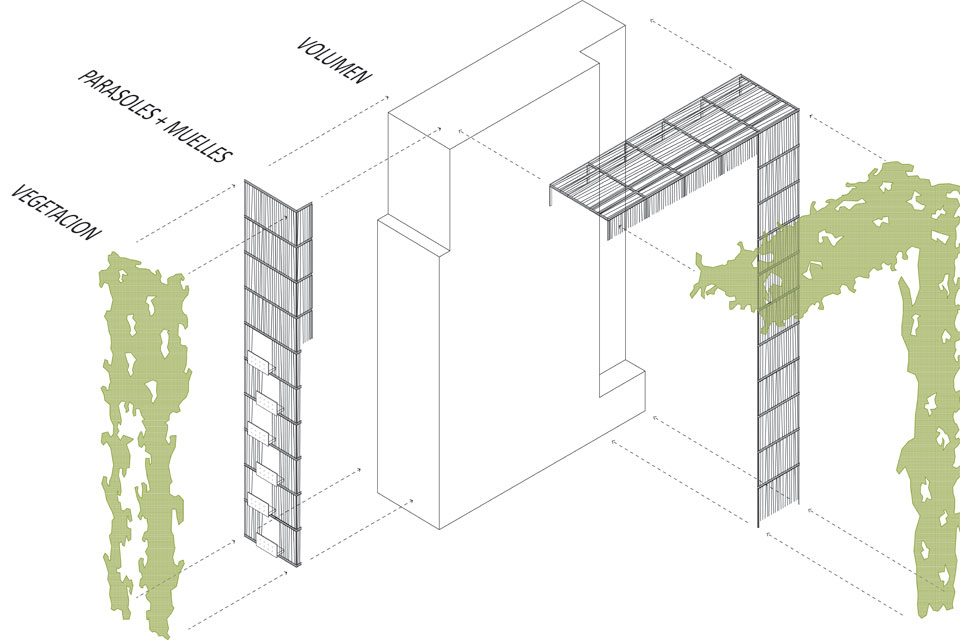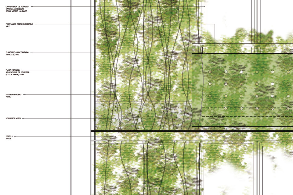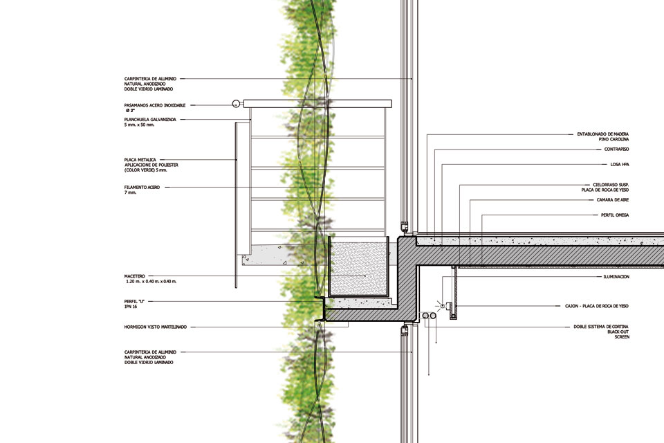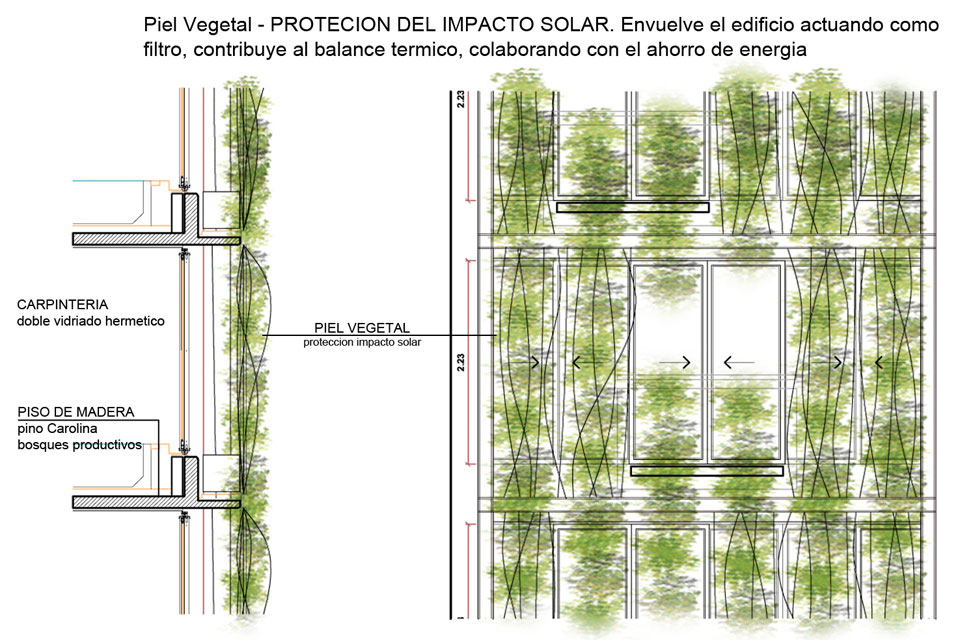 • Las Plantas que envuelven el edificio actúan como filtro y contribuyen al balance térmico, colaborando con el ahorro de energía.