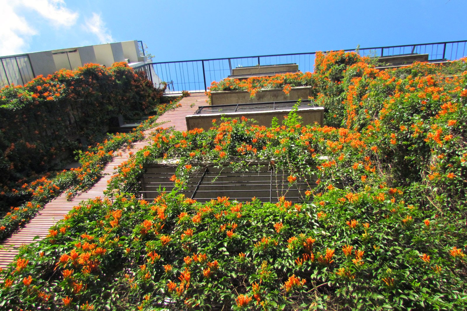 • Las Plantas que envuelven el edificio actúan como filtro y contribuyen al balance térmico, colaborando con el ahorro de energía.