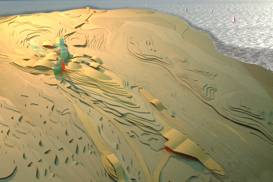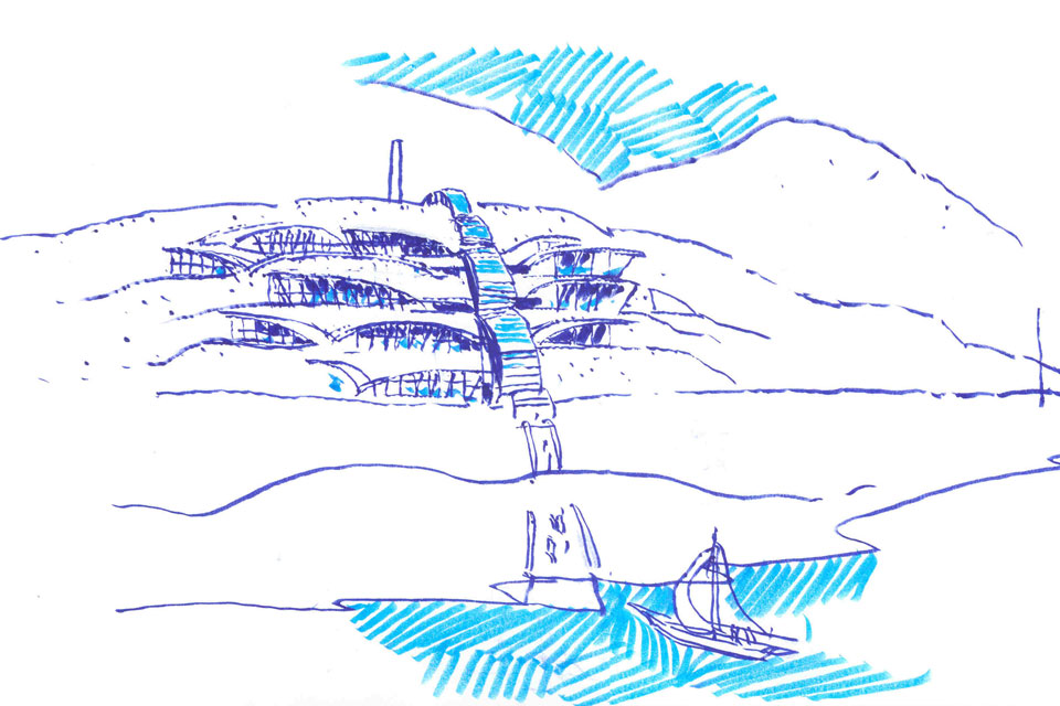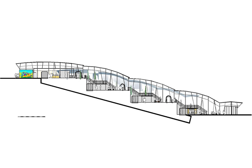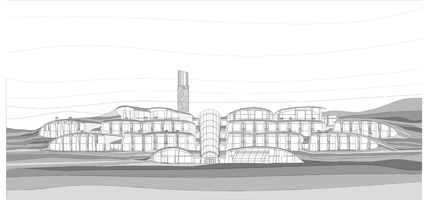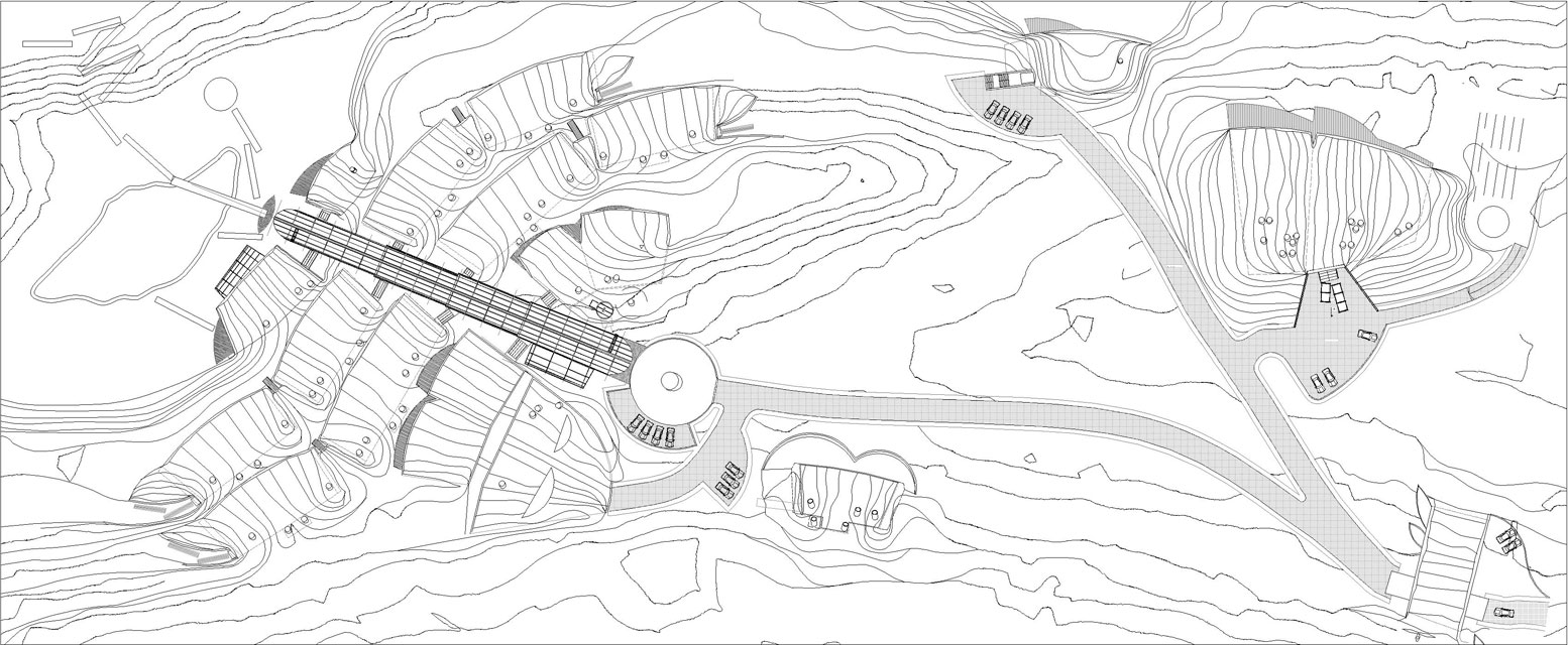 Se propone una arquitectura de baja altura, integrada al paisaje, pero de fuerte imagen identificada en sus importantes invernaderos que lo caracterizan.