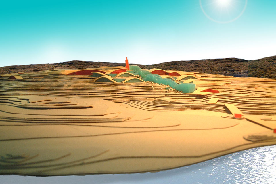 Respetando las premisas básicas del cuidado medioambiental, un manto de tierra patagónico cubre casi la totalidad de lo construido, minimizando al extremo el impacto del edificio. De esta manera se restituye la porción de territorio luego del paso del hombre-constructor.
