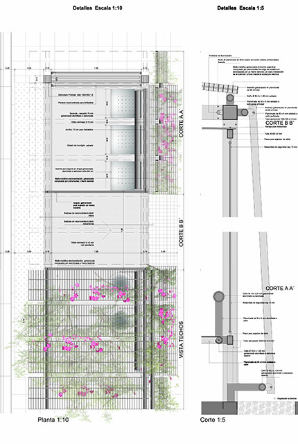 La propuesta de un paisajismo sustentable con la adopción de vegetación nativa, adaptada al suelo y al régimen de lluvias, genera sinergia con aves y mariposas, aumentando así la biodiversidad del ambiente. Se seleccionan: pyrostegia venusta, macfadyana ungris-cati, solanum amygdalifolium, solanum angustifidum y campsis radicans. Estas especies con sus particulares floraciones aportan color en las distintas épocas del año.