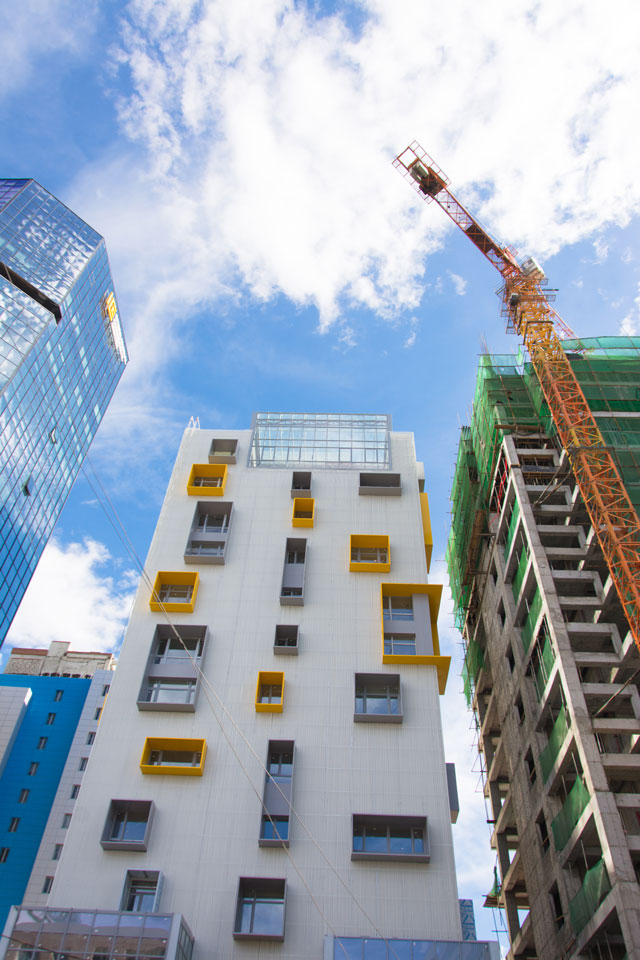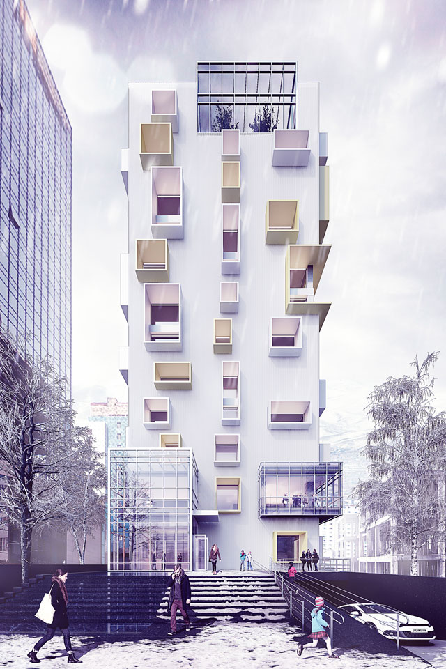Esta torre con un programa híbrido está situada en Mongolia, próxima a la plaza Gengis Kan en Ulan Bator, la capital más fría del mundo. Si bien la ciudad cuenta con una cuadrícula ortogonal como matriz generadora urbana, el tejido urbano no presenta tipologías entre medianeras sino que los edificios son volúmenes exentos.