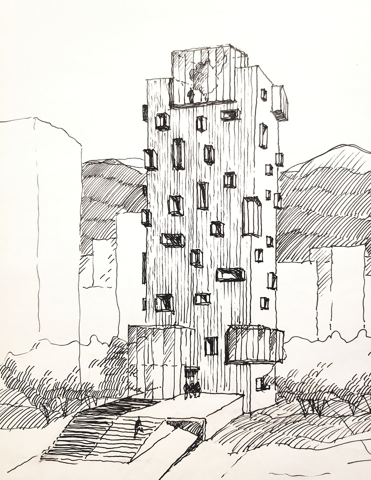 Se trata de una arquitectura que queda liberada de los límites físicos concretos. La masa construida es una pieza exenta que expone el perímetro en su totalidad. En un entorno de torres hay que crear nuevas torres que generen un diálogo. La intención es concebir una torre como una obra land-art en plena ciudad, que aporte un valor escultural, para generar empatía y así humanizar la arquitectura. Generar plantas bajas que aporten vitalidad a la ciudad a partir de programas variados como bares, restaurantes, galerías de arte, etc.