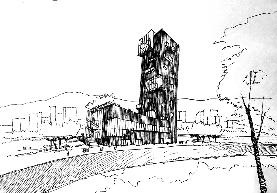 Nuestra propuesta arquitectónica queda liberada de los límites físicos concretos. La masa construida deviene pieza exenta, con el perímetro expuesto en su totalidad. En un entorno de torres hay que crear nuevas torres que generen un diálogo. Pero esto no basta, la intención es concebir una torre como una obra land-art en plena ciudad, que aporte un valor escultural, para generar empatía y así humanizar la arquitectura.