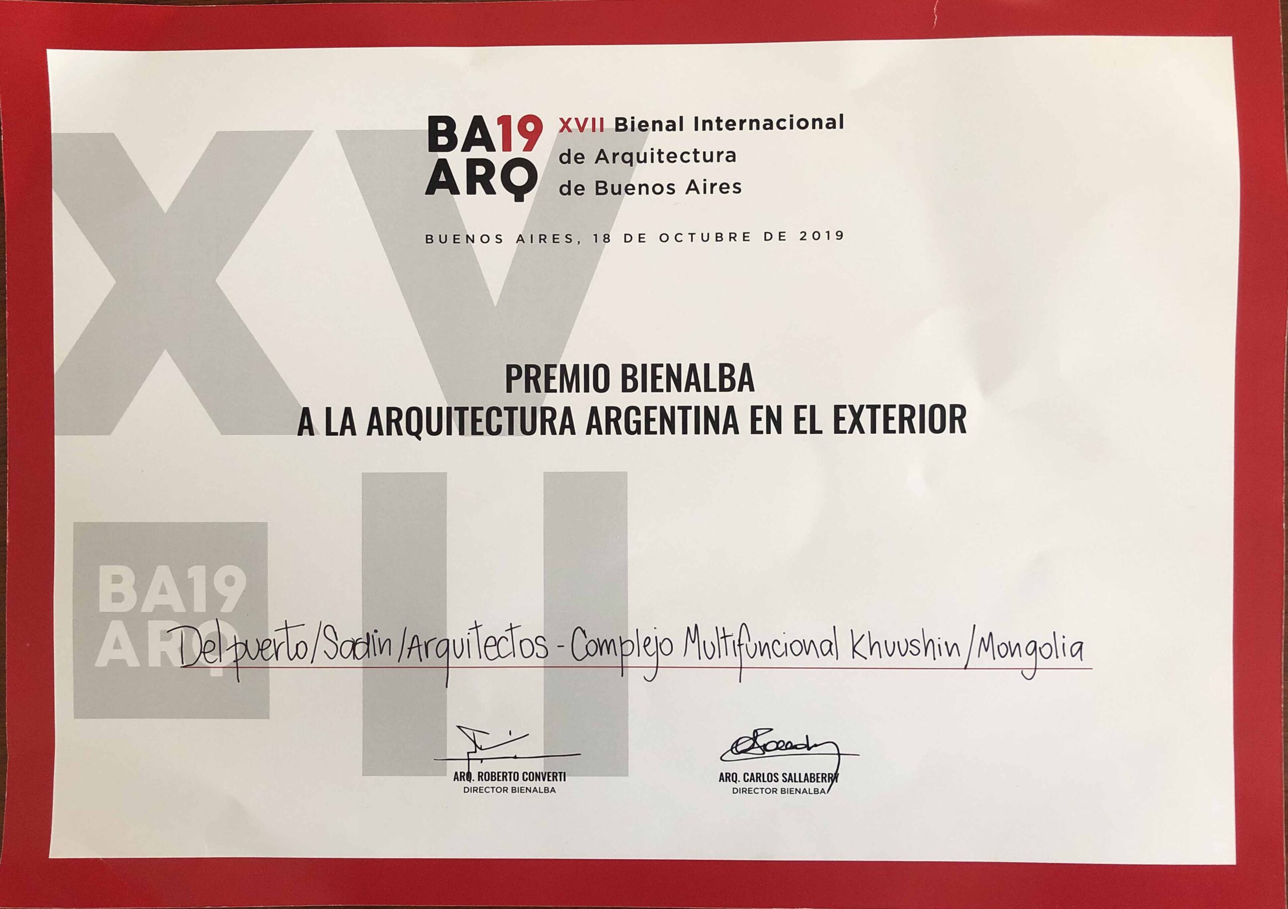 Recibimos el Premio Bienalba otorgado en el marco de la XVII Bienal Internacional de Arquitectura de Buneos Aires a la Arquitectura Argentina en el Exterior, por el proyecto Complejo Khuushiin en Mongolia. Octubre 2019...